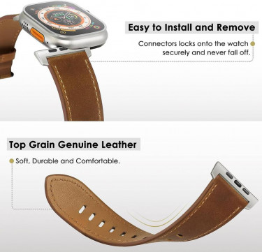 UUPWPOKT Compatible with Apple Watch Ultra Band 49mm 45mm 44mm 42mm Men Women, Top Grain Genuine Leather Band Strap Wristband for iWatch Ultra Series 8 7 6 5 4 3 2 1 SE2 SE, Retro Brown/Titanium Color: Retro Brown/Titanium Size: 49mm/45mm/44mm/42mm Bought from Amazon for $13.99+ tax, ask for $5. https...