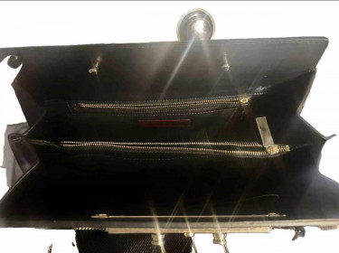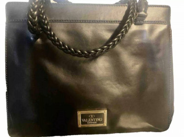 Valentino Garavani Demetra Leather Floral Lace Frame Satchel Tote Bag is a large satchel/top handle bag made of pre-owned black leather with a solid pattern and a push lock closure. The bag has a gray exterior color with gold hardware and black handle/strap color. It features a lace fabric type and a black li...