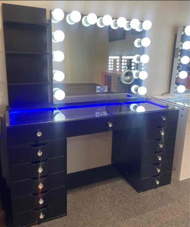 We have new arrivals pink black and white vanities all sizes with led colors