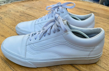 Hi I'm selling these Vans shoes because I don't wear them often. Good, used condition, scratches, scuffs and obvious wear. Originally purchased last year.No original box. color: white size: 12 mens low-top, Sidestripe shoe canvas and synthetic uppers model: Classic Old Skool Lace-up closure Reinfor...
