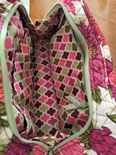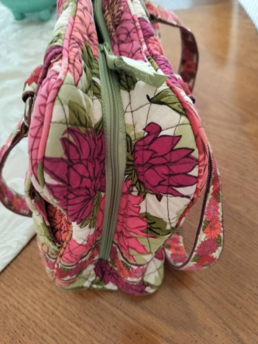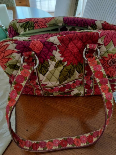 Vera Bradley purse with vibrant colors. Clean like new. 14" x 9" 4" gussetted bottom. Double zip top. Outside side slip pockets. Inside zip and 3 slip pockets, 24" double strap drop. Cash upon porch pick up.