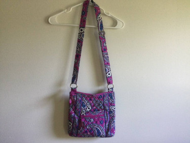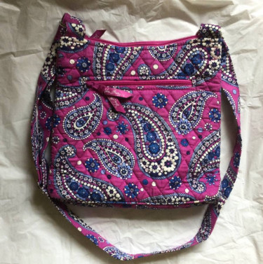 Vera Bradley Crossbody Hipster in retired Boysenberry pattern. Like New Condition. Measurements: 10 W X 11 H X 1 3/4” D 52” Adjustable Strap 3 zip pockets (front, back and top) There is also an outer pocket that doesn't zip. Inside there are three pockets. Paisley Design on the outside with flo...