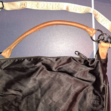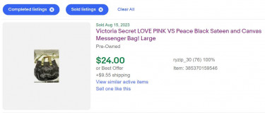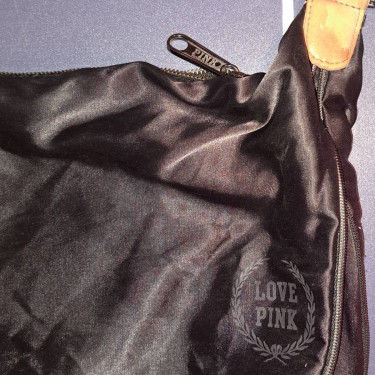 Victoria Secret LOVE PINK VS Peace Black Sateen and Canvas Messenger Purse Bag Tote I am selling these on behalf of my gf. I dont know much about them. They are all preowned, but still in usable condition. The top one is like sort of see through beach bag type thing. The lower right is a tote. $10 each...
