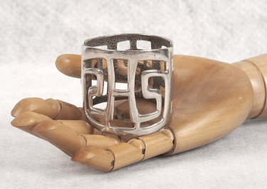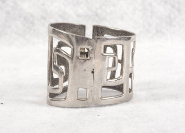 PLEASE NOTE - SHIPPING AVAILABLE. Please include a phone number with your response. Thank you _________________________________ Vintage 1970's Silver Hinged Cut-Out Wide Clamp Bracelet, 6-7" Wrist Stylish silver metal hinged wide bracelet with unique cut-out pattern. Nice solid piece weighing 83 grams ...
