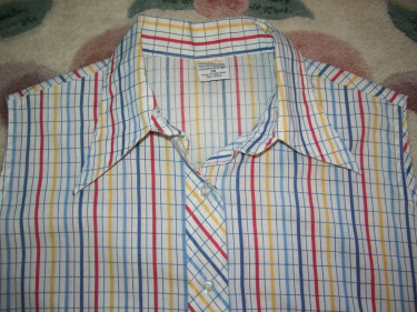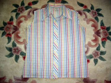 Pretty Ladies Vintage 1970s Printed Sleeveless Top in Mint New Condition. Update your fun wardrobe today; wear with jean jacket! Style includes: Colors are White Background with Blue, Blue/Gray, Red and Yellow Checks, Sleeveless Pearly Button Down Checkered top with a retro pointed Collar, Material is 65% ...