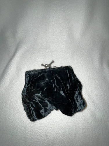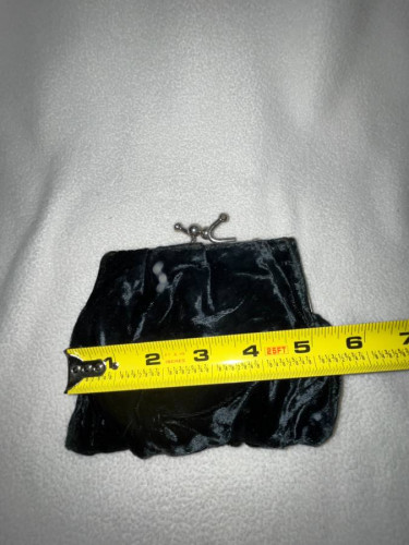 Vintage Black Velvet Clutch Measures approximately 5 1/2" x 5" Velvet is separates from purse frame for a small section at top. Could possibly be tucked back into frame. No shoulder strap included.