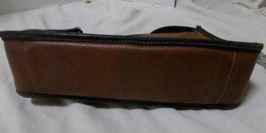Vintage Brighton purse. Brown pebbled leather with black accents. 12 1/2" W x 8" H x 3 1/2" D. 18" high from top of strap. Has a snap side pocket, zip pocket inside and zip pocket top. Has small stain inside. Meeting in the Humble or Kingwood area