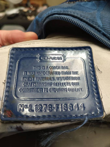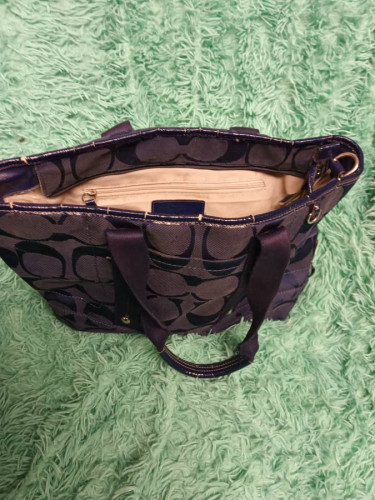 Vintage Coach Navy Blue Kyra Daisy Tote Shoulderbag in fair condition. Has ink spot on inside and leather at very top is worn