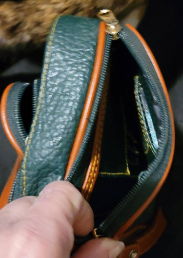 Vintage Dark Green Brown Leather Dooney & Bourke Cross Body Bag Medium. Detachable leather strap. 1 Zippered front cell phone case holder. 1 Zipper pouch in the front. 2 Zippers on the top. 4 credit card slots in one side. 1 Driver’s License slot in one side. 1 additional side opening from the top. ...