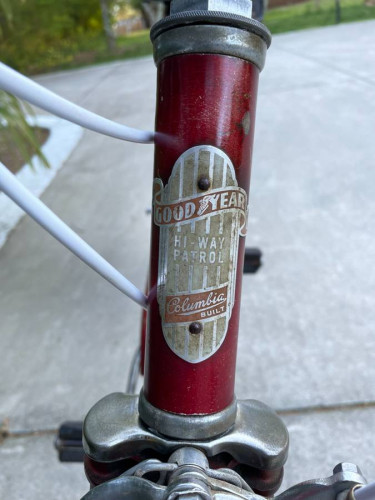 VINTAGE 26" GOODYEAR HI-WAY PATROL 3 SPEED BICYCLE BY COLUMBIA, YOU COULD ONLY GET THESE BICYCLES AT A GOODYEAR STORE, ALL MOST ALL ORIGINAL NEW PAINT ON FRONT FENDER AND WHITE ON REAR FENDER, NEW SEAT, BRAKE PADS AND FRONT TIRE, EVERYTHING WORKS, READY TO RIDE, IN OAKBORO NC 35 MILES EAST OF CHARLOTTE, CASH ...