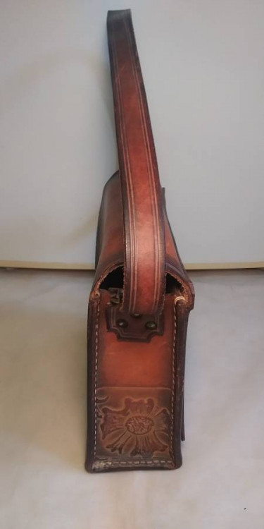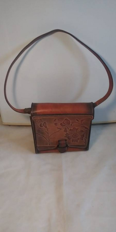 Have Old KILSHANNY Co. Leather Bag, Handmade stamped, Smaller sized, Thick heavy stitched, Tooled flower front and sides, Flap panel closer loop, Riveted carry strap, Nice for age $ 50 CASH -- Have Vintage Levi's Denim Vest, Original 1982 jean jacket, Red tab, Button snaps, Chest and hand pockets, Label tag ...