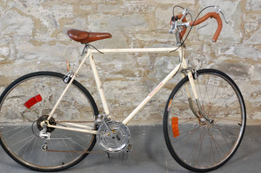 Vintage French road bike. All original parts except for brake pads, tubes, tires, drive train and cables, all of which I just installed. I overhauled this bike including the bottom bracket and it is solid. I can't tell the exact year, but it is a 1970s Motobecane Mirage. The paint is a little chipped but that...