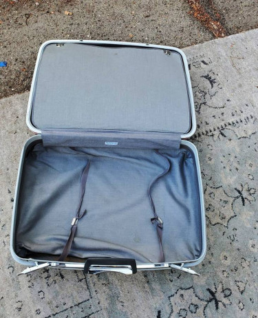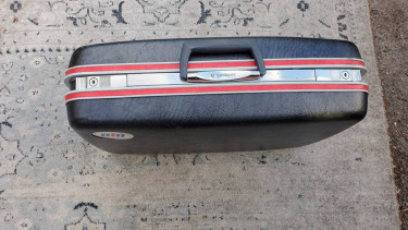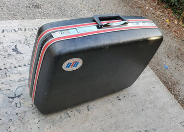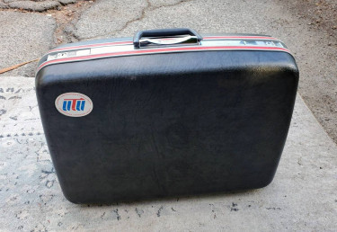 in excellent vintage condition claps work no keys has a name and address engraved on top (see photo) UNITED TRANSPORTATION UNION logo on both sides fabric is a bit droopy/separating in some spots inside but could be tacked bottom is 8" deep, top is 6" deep 23" wide, 17" high PLEASE TEXT ME - ...