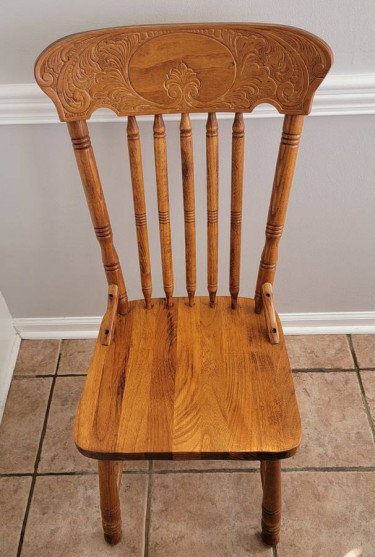 This oak table came from an era where quality was the number one objective. There's not a scratch in sight. It's very solid and HEAVY (unlike most that you see on the market today). Dimensions with the leaf are 60" × 42". Without the leaf It's a 42" × 42" circle (the leaf is 42" × 18"). The chairs are all ...