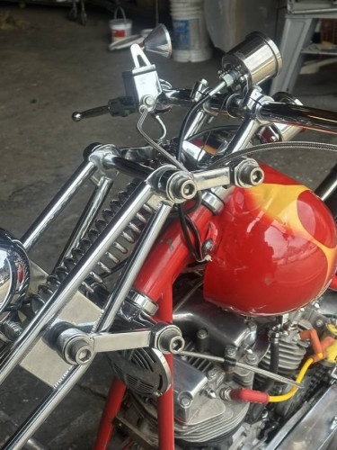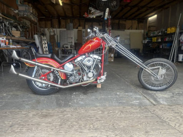 70's era HD hardtail w/ 20" over girder front end is Wa. titled. 1975 FLH 1200 plant completely SandS rebuilt inside and out -but for original matching cases. 4 speed, open belt primary, dry clutch, hydraulic disc brakes and forward controls. 16" rear 21" front new Harley Davidson Dunlop tires, battery and c...