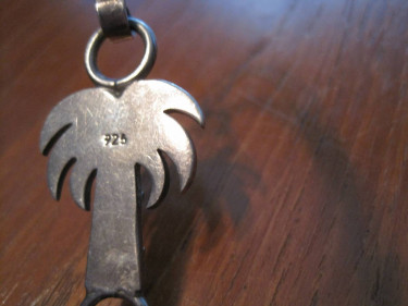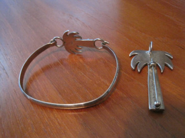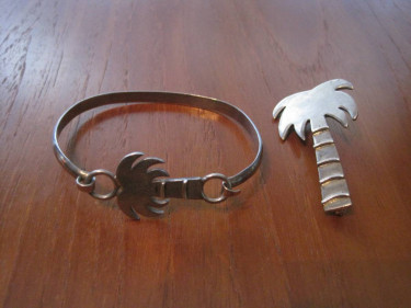 Beautiful matching jewelry set, consisting of a Sterling silver hook bangle / Bracelet and pendant / brooch in excellent condition, clean and ready to wear. Sterling Silver .925 Palm Tree Bracelet 7.25 inches in size. Weight: 14.6 Grams. Inside Width: 2 5/8". Beautiful and versatile, 2 inch tall palm tree ...