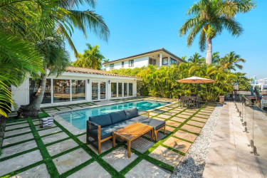 Amazing 3 bedroom/ 3 bathroom plus Den waterfront House. Located exclusive Palm Island, the contemporary home is complete with new furnishings, new baths, open kitchen, wood floors, original vaulted ceilings, new pool & boat dock and upgrades throughout. The open floor plan allows you to enjoy the stunning no...