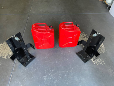 I have two Wavian heavy duty lockable jerry can holders with jerry cans. Holders have never been used or mounted. Jerry cans have been used but are in great condition, caps are intact, no cracks or fatigue. $80 per set or $140 if you buy both sets.