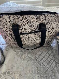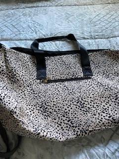 Mali Lili weekender bag in a cream animal print. Made of lightweight canvas.