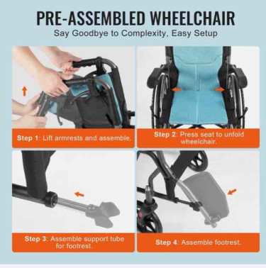 Lightweight Manual Wheelchair Foldable Aluminum Alloy 18" Wide Seat 250lbs