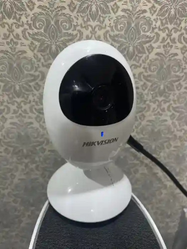 Indoor megapixel camera. Outputs an image of 1280x720, supports two video streams, and has infrared illumination up to 10 meters. It has its own WiFi module, built-in microphone, and speaker.