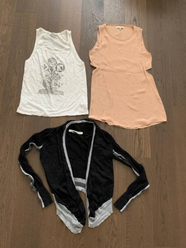 For sale is an excellent preowned Women’s clothing lot. Total 25 pieces. size range XS-S and US 0-2. Brands included Aritzia, Tonic lifestyle apparel, Free People, Oak and Fort, Marciano, Nordstrom, Anthropologie, James jeans, Plenty, Sak’s fifth Avenue, Rag and Bone. Included in the lot is: Tank to...