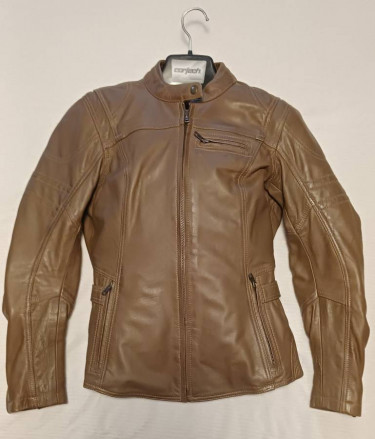 Women’s Cortech Bella Leather Motorcycle Jacket. This jacket appears as if it’s new. Was worn for a photo shoot. Café styling. Constructed using top grain 0.8-0.9mm thick cowhide leather. Aged leather for a vintage and broken-in look. YKK zippered front closure, chest pocket, hand pockets, and cuffs. An...