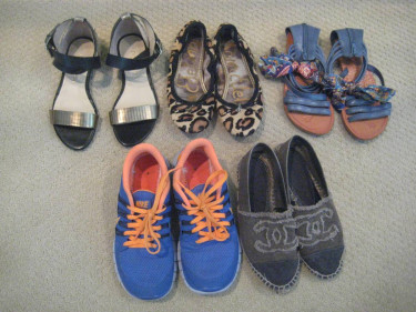 Women's Pre-Owned Designer Shoes for a Fraction of the Original Cost Your Choice: $15 each 1) Women's Sam Edelman Felicia Ballet Flat -- size 4.5M Leopard print, elasticized for better fit, petite bow with SE charm 2) Colors of California blue leather strap sandals -- size 33 A...