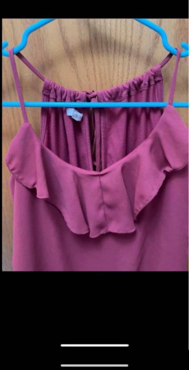 Women’s small tank top lot. $3 a tank top or $10 for all Maurice’s tank top. Pink dressy tank top, ruffles on front. Ties in the back around neck. Easily adjustable. 100% polyester Like new condition $3 Maurice’s sparkly tank. Like new $3 Blue Hollister tank $3 Maurices purple and white striped tan...