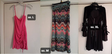 Dresses (sz. are in pic.) $5. ea. Tops (sz in pic.) $5 ea. Black Long Sleeve Top $5 sz.M Pink Dress-$5 sz.L Black Goth Dress $10 sz. XL Long Skirt $5 sz. M Please reply with ph.# and I will get back to you(NO SPAM) I will remove ad when gone