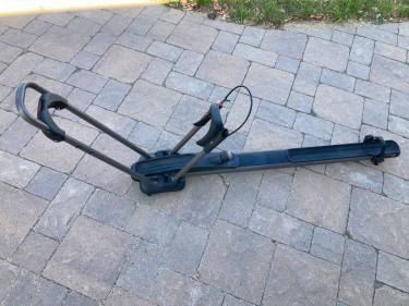 Used Yakima Highroller upright bicycle mount in excellent condition for sale. This holds your bike upright without having to remove a wheel. Fits all size road and mountain bike tires from 20" to 29" (29er) and widths up to size 3.0 and wheelbases up to 50". Has an integral cable lock with SKS lock and key. C...
