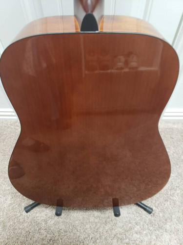 So nice, still has the plastic on pickguard! Very little play time in its life. Was always kept humidified and in a hard case so almost no signs of wear anywhere. Beautiful finish and spic and span clean inside and out. No pets, no smoke, no odors. Just set up today with NEW Martin 12 gauge strings and very l...