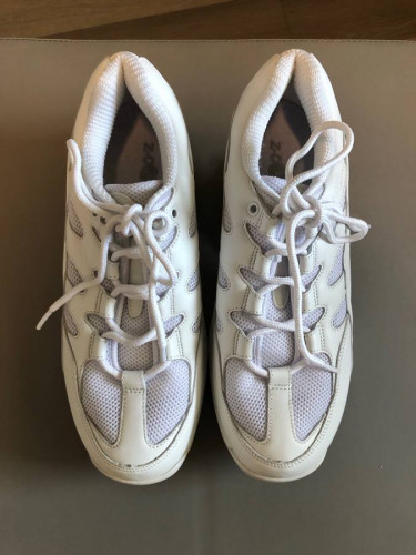 Step up your walking game with these Z-CoiL sneakers designed for maximum comfort and pain relief. The white leather upper with logo accents and lace-up closure give them a stylish look perfect for outdoor activities. The orthopedic design and arch support are ideal for those who need additional foot suppor...
